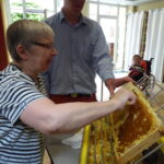 Un moment clé a été l’activité autour des ruches et du miel. En juin, nous avons fait une première récolte. Les résidants ont pu s’essayés à l’extraction du miel. Les mains collantes…nous avons eu le droit de se lécher les doigts, quelle joie!